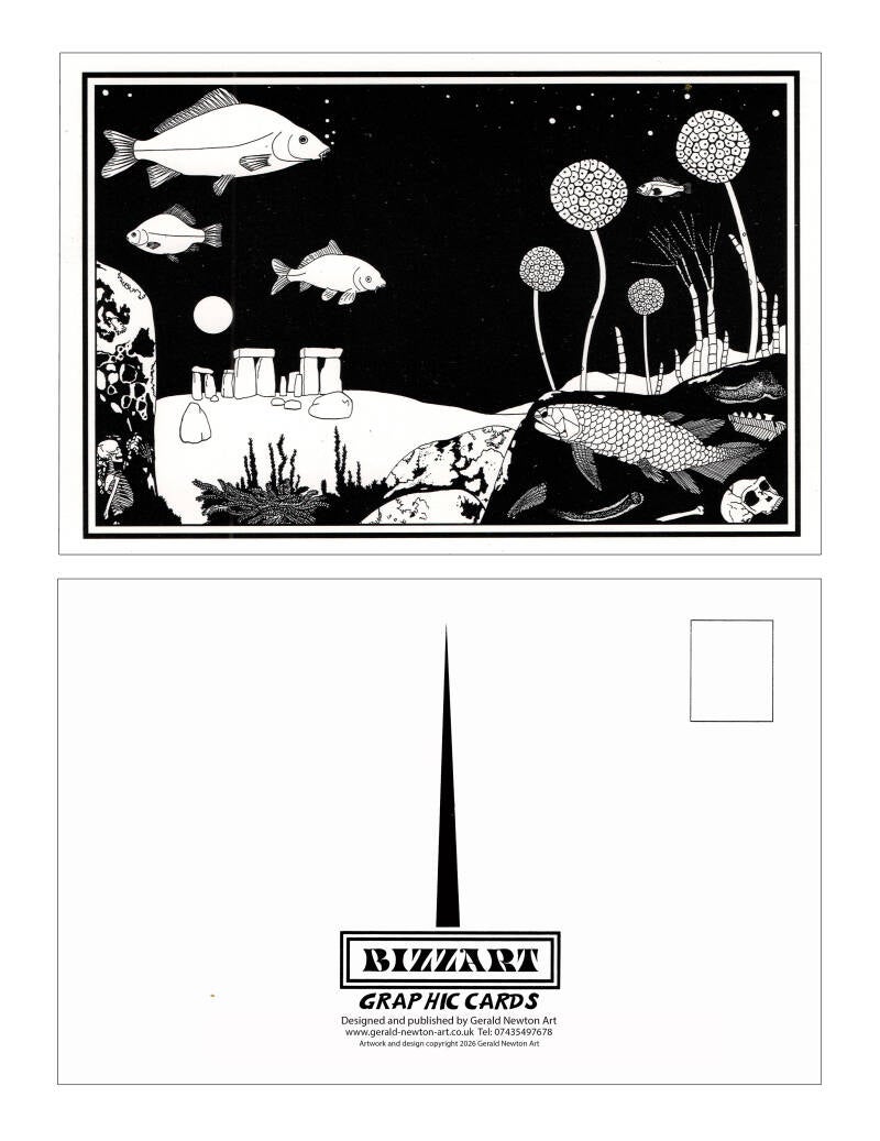 Here you can purchase my self-published art products. Including my two beautifully produced coffee table art books. Both feature well over 100 high quality reproductions of my published jigsaw puzzles, record and book covers. Both books are hardback with gloss finished dust jackets. You can also purchase my black on white and full colour postcards featuring some of my digital paintings and line drawings. All postcards are A5 in size with gloss finish. Also available for purchase are some full colour digital downloads of my bright and imaginative art and some of my traditionally hand painted pieces.